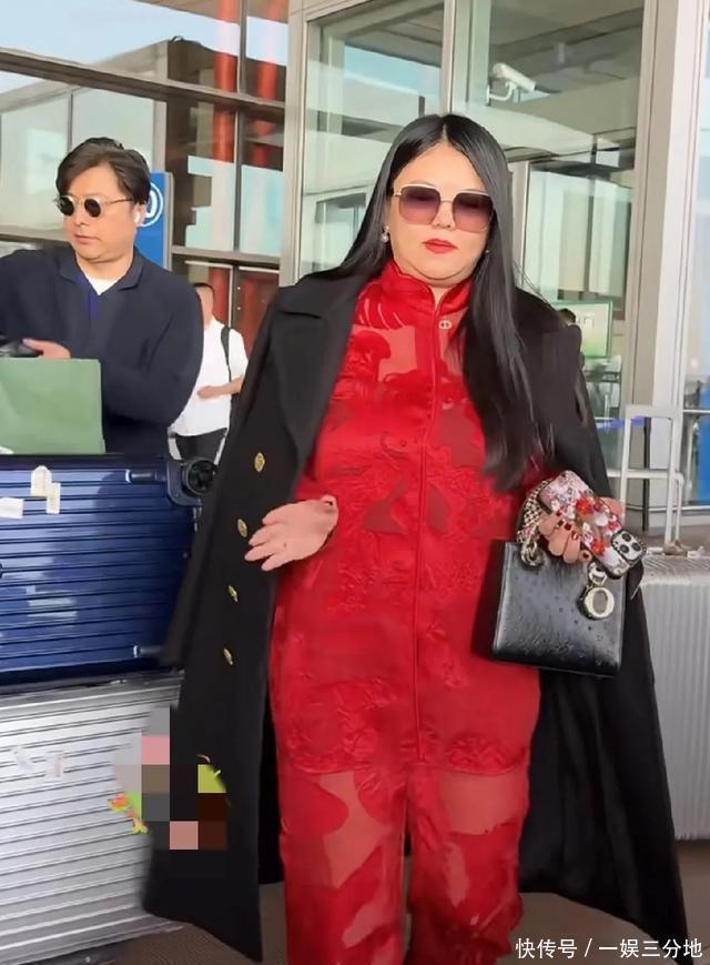 李湘一身红衣现身机场,身材壮硕比王岳伦宽两倍,尽显富态